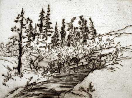 Etchings and watercolors from the Westward Bound Series (1929 - 1931) are available as well as black and white woodblock prints of animals from Martin’s working Seekonk Farm.