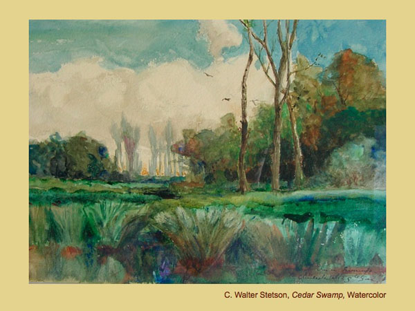 The Women’s Centennial Committee founded the Rhode Island School of Design in 1878 and down the hall the Providence Art Club was founded in 1880 to ‘”Promote the interest of the artists of the city of providence and the state of Rhode Island .’ Women artists such as Emily Selinger and Clara Maxfield would not only exhibit at the Centennial but then become members of the Providence Art Club. Recognized 19th century artists such as George Whitaker, Sydney Burleigh, H.A. Dyer, Elijah Baxter were artists of the day who championed the Providence Art Club, Newport Art Association and Providence Water Color Society.