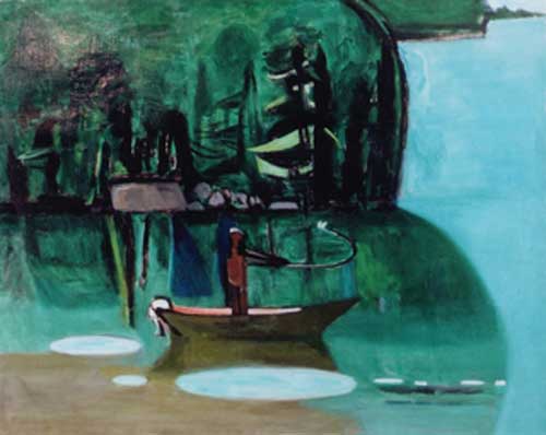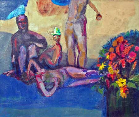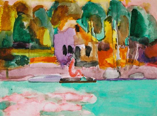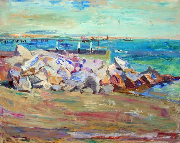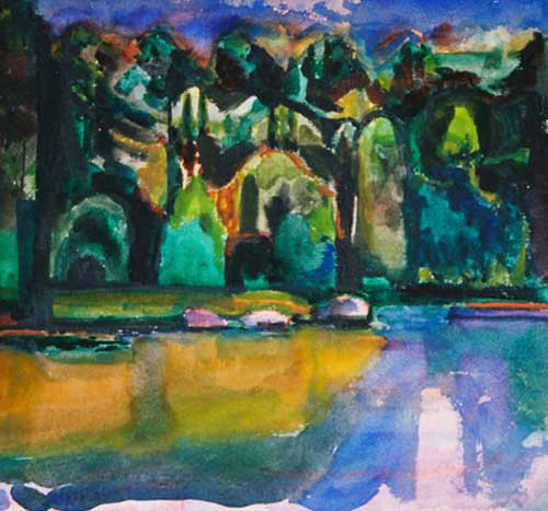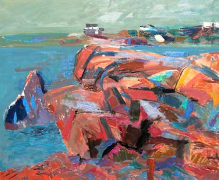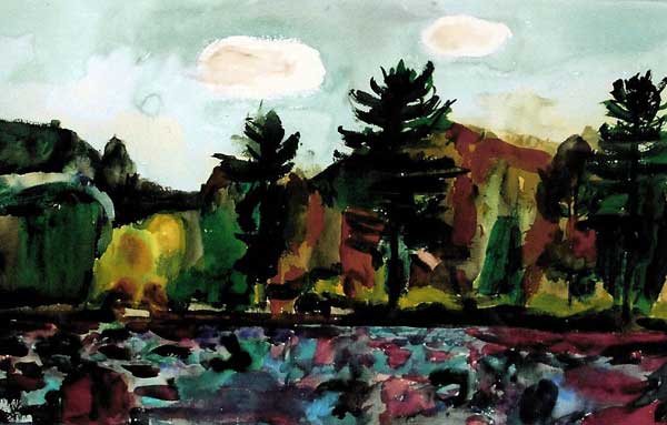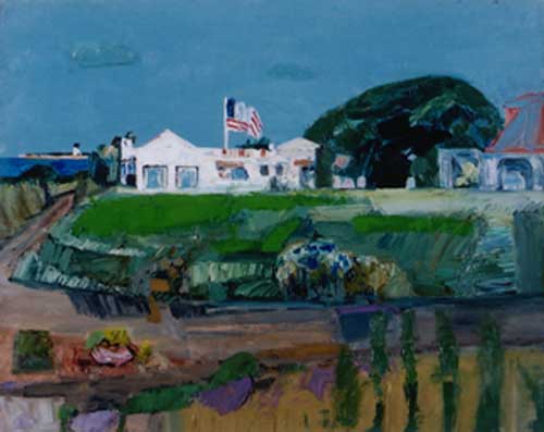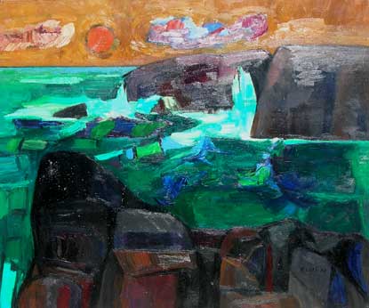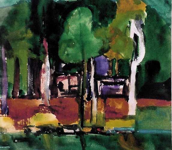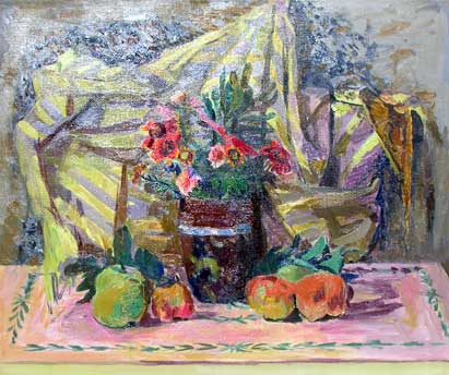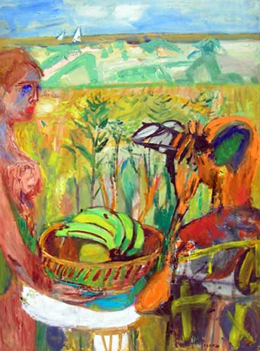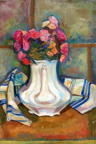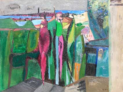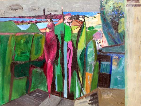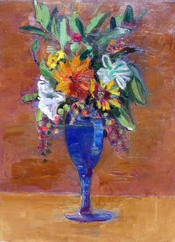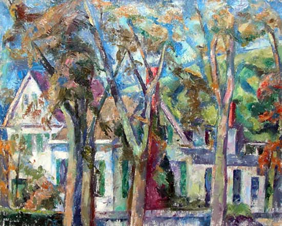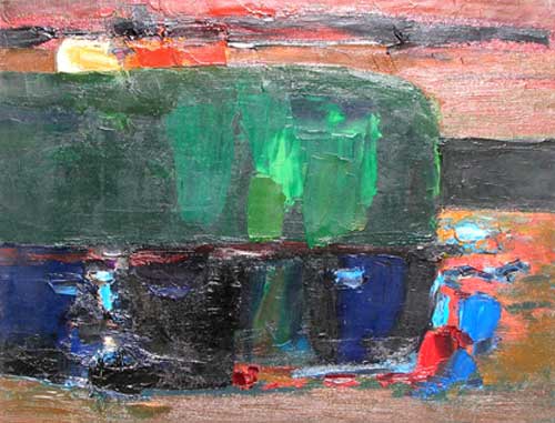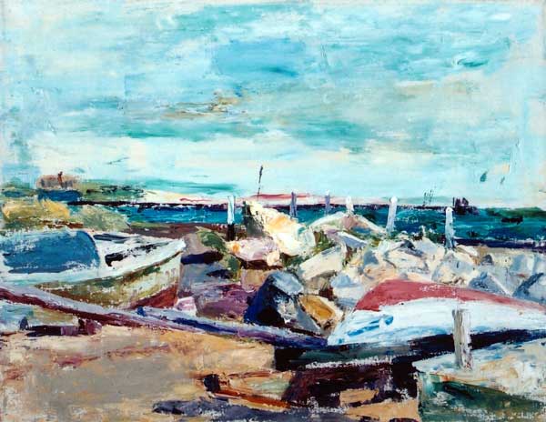 By the 1950's Florence Leif (1913 - 1968) settled into a “modern” period producing bold canvases and watercolors with slashing brush strokes and pulsating color. Profoundly influenced by her travels through Europe and a lifetime of exposure to innovative Provincetown painters, Leif left behind her traditional past and embraced the spirit of painterly experimentation. American modernists such as John Marin dominated the art scene advocating a fresh perspective in painting moving toward a highly personal and dis-associative view of nature. Leif took on this challenge creating a world on canvas of velvet twilights, ethereal figures and gothic landscapes. Whether Leif stained, carved out, or built up her surfaces with paint, she stands out a great colorist throughout her career particularly evident in her flower and still life studies that will be on view. Her remarkable work distinguishes her from fellow Rhode Island artists both in subject matter and style.