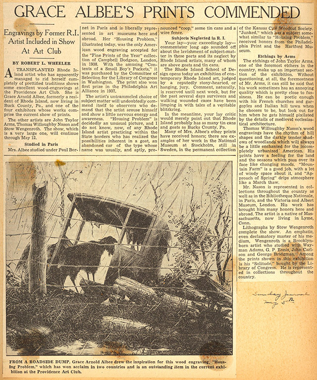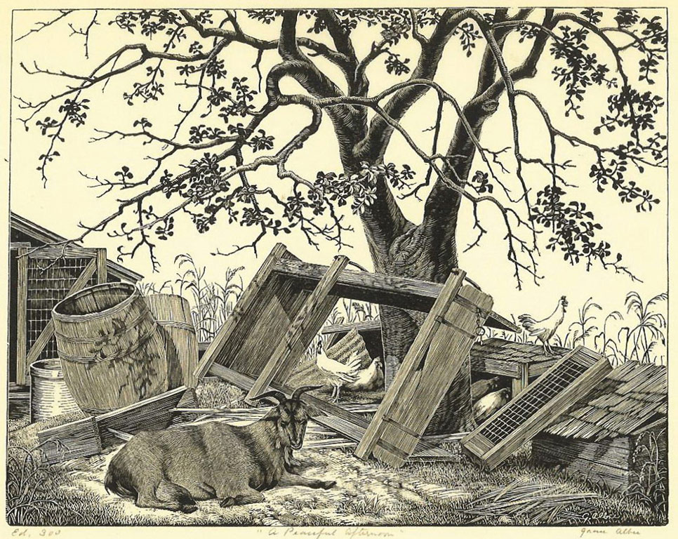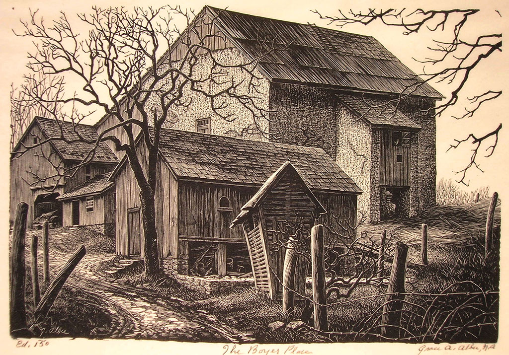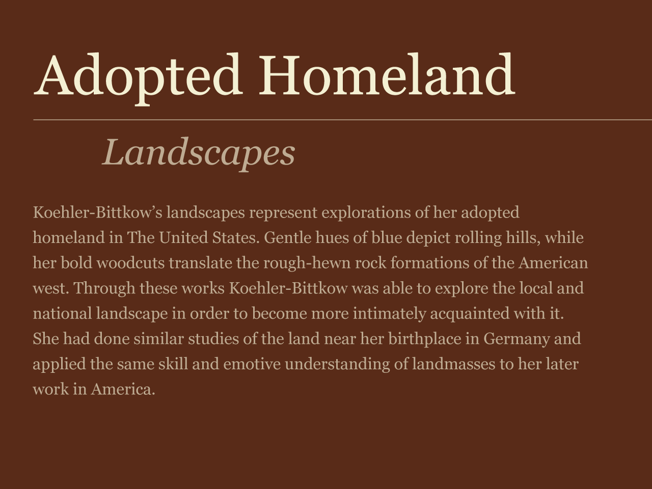 Albee, an American perfecting the technique of wood engraving, generated images of rural America while Koehler-Bittkow gouged out vigorous woodblock images of the German landscape and nature.