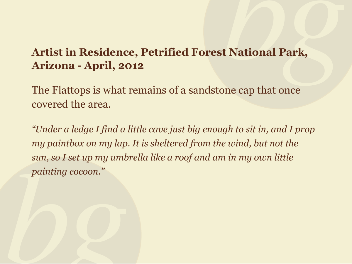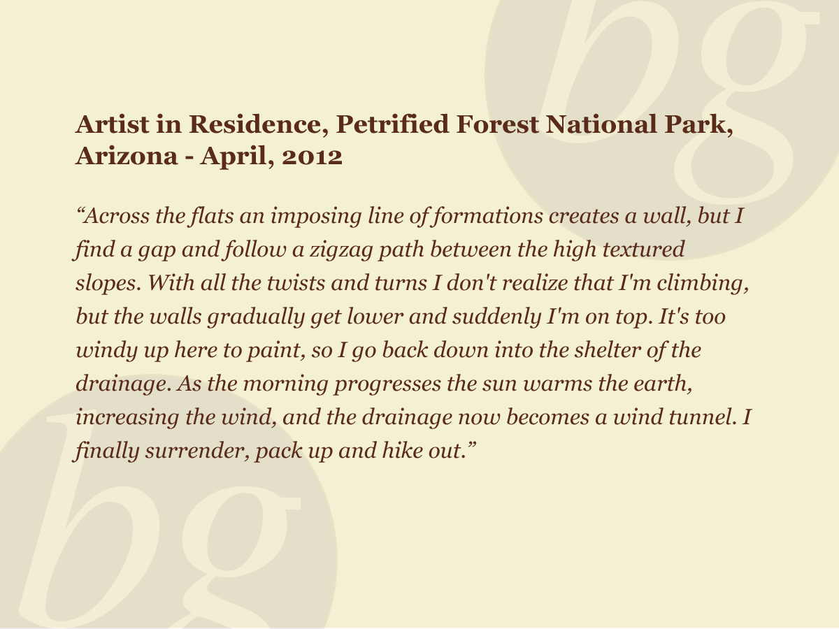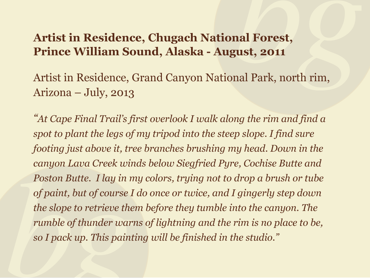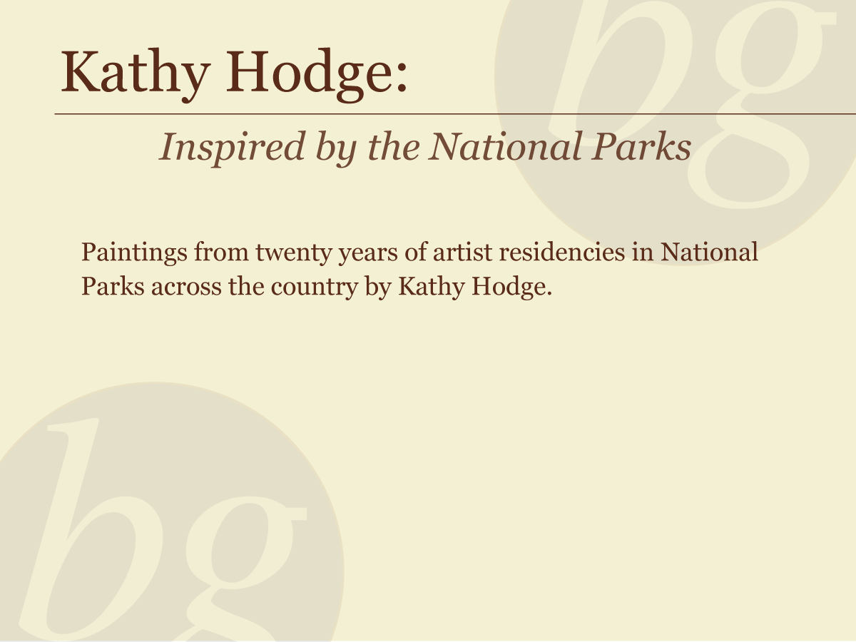 This exhibit of paintings, sketches and watercolors is a sampling of twenty years of artist residencies in various national parks across the country by Kathy Hodge.