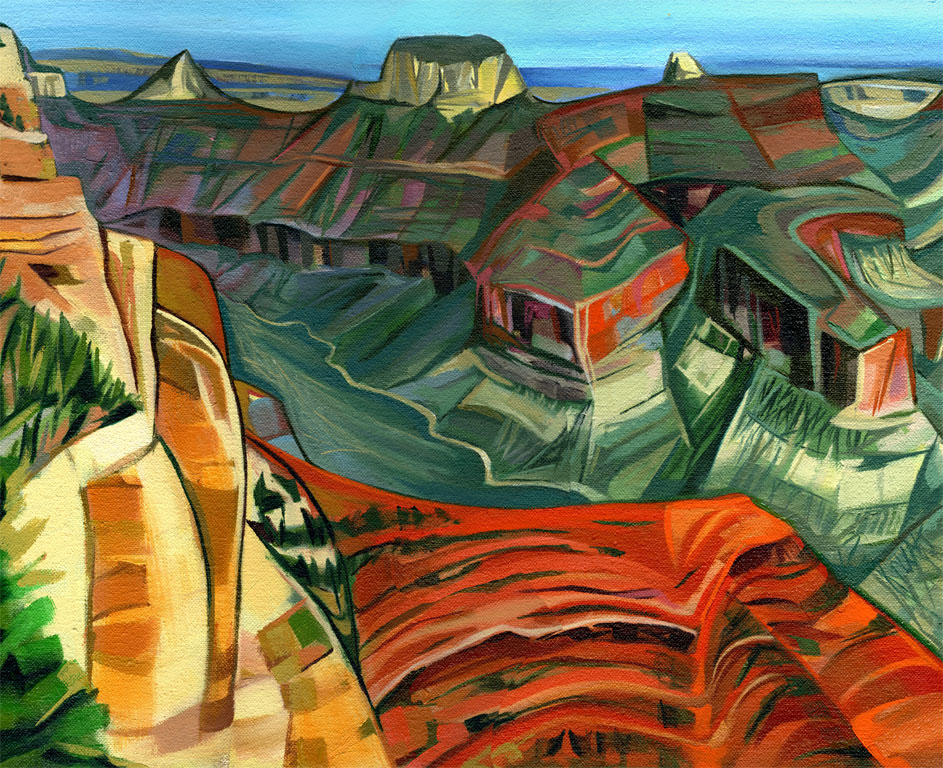 The result of this process is an exhibit, Kathy Hodge: Inspired by the National Parks, which provides an intimate glimpse into the many ideas vying for attention in Kathy Hodge’s brain. Enjoy a glimpse into the creative chaos and decision making of an artist wrestling to harness visual images and the underlying spider web of meaning.