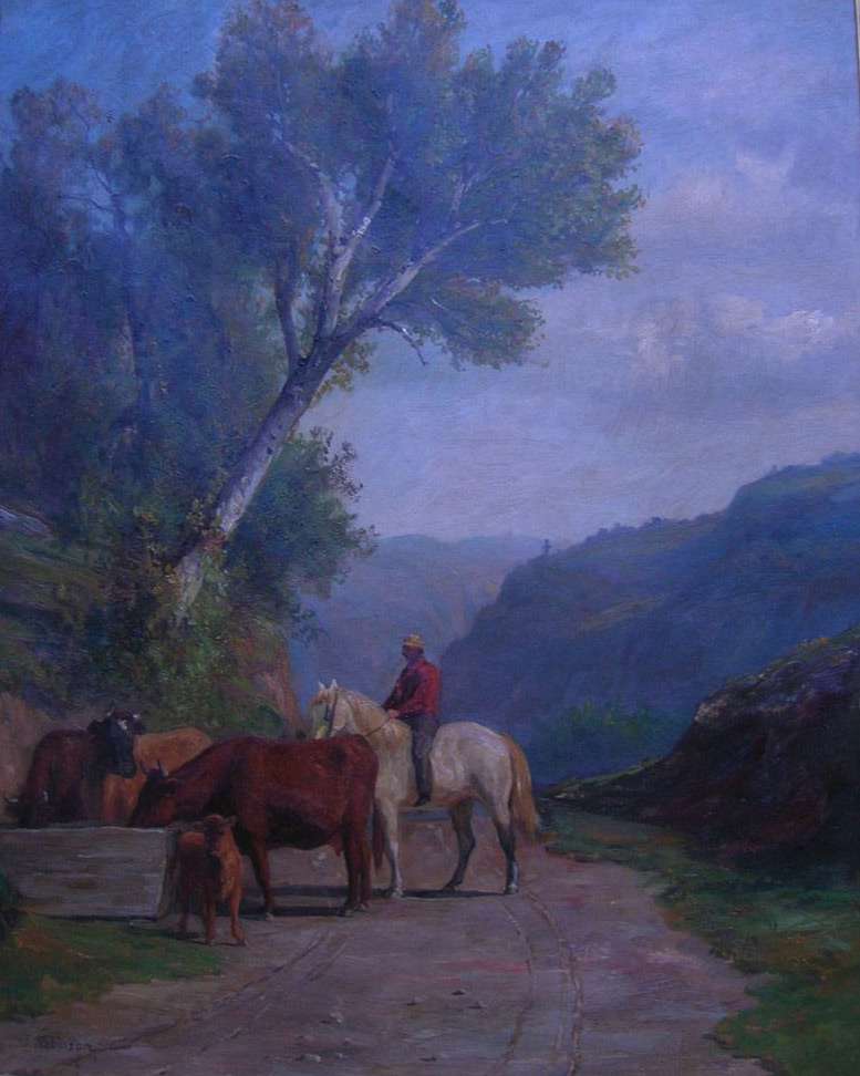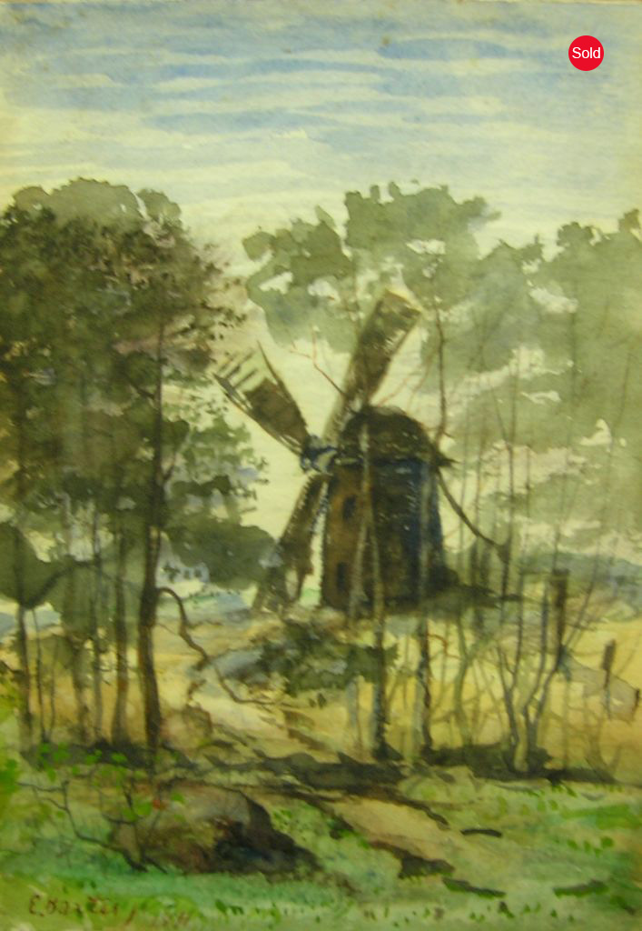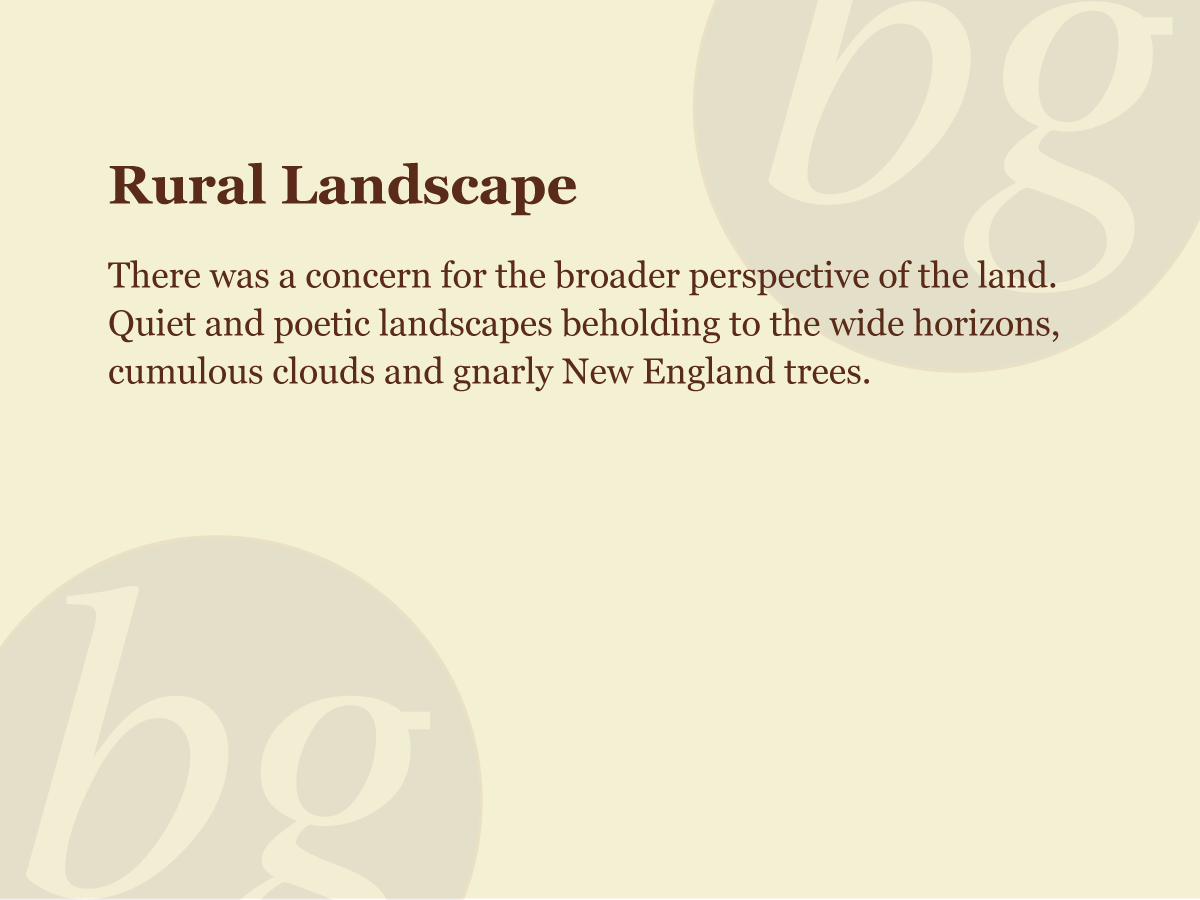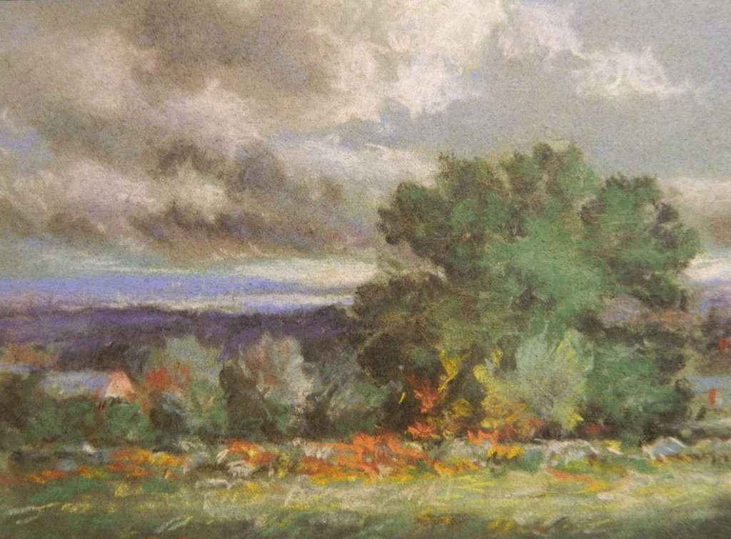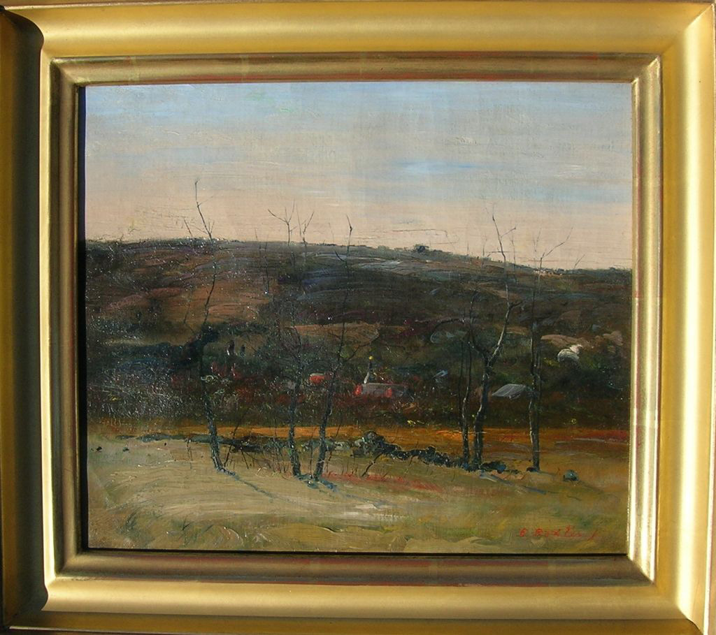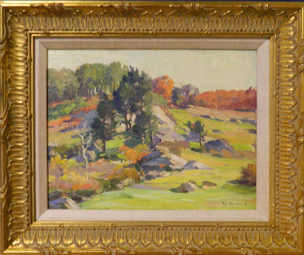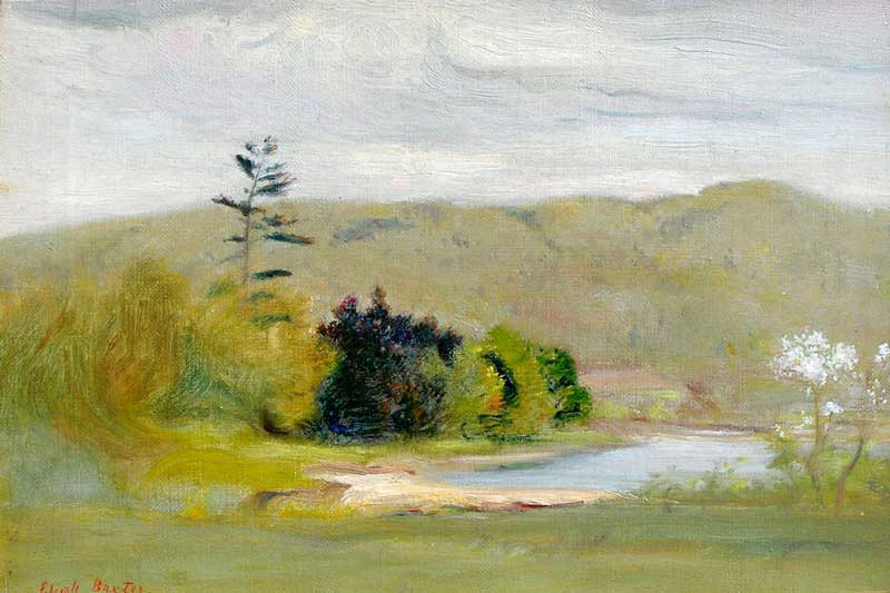 By the early 20th century the dark and mysterious forests of the 19th century give way to a broader perspective of light, weather, atmosphere and terrain. Elijah Baxter (1849 - 1935), Horace Burdick (1844 - 1942) and later Arthur Douglas (1860 - 1949) continued the “en plein air” (in the open air) approach but looked for a viewpoint often capturing the milky blue skies colliding with the rugged brown fields and hills of New England. Additionally, these artists often chose the genteel media of watercolor to capture their intimate natural surroundings.