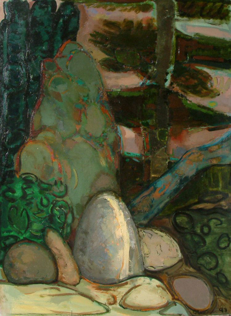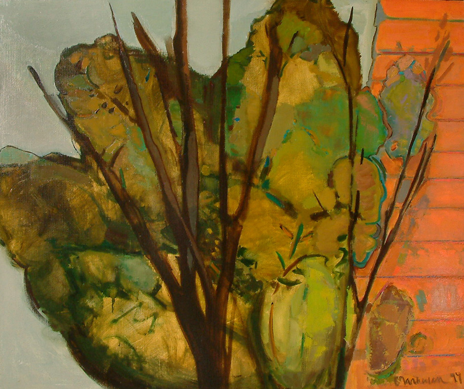 Other contemporaries round out the exhibit such as Robert Thornton who delights in the texture, playfulness and lushness of plants, animals and space. While Paula Martiesian is endlessly loss in the terrain of her Halsey Street backyard, painting the seasonal variety of plants and forms.
