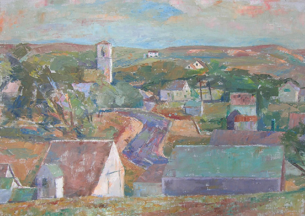 1. Florence Leif, Distant Buildings oil on canvas 30" x 40"