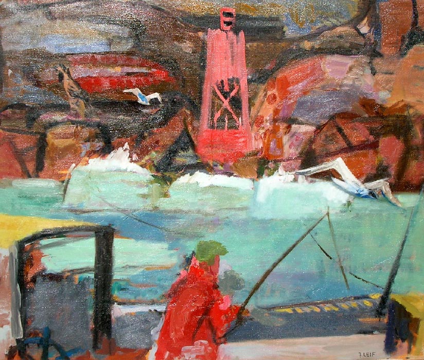4. Florence Leif, Fishman and Red Nun Buoy oil on canvas 20" x 24"