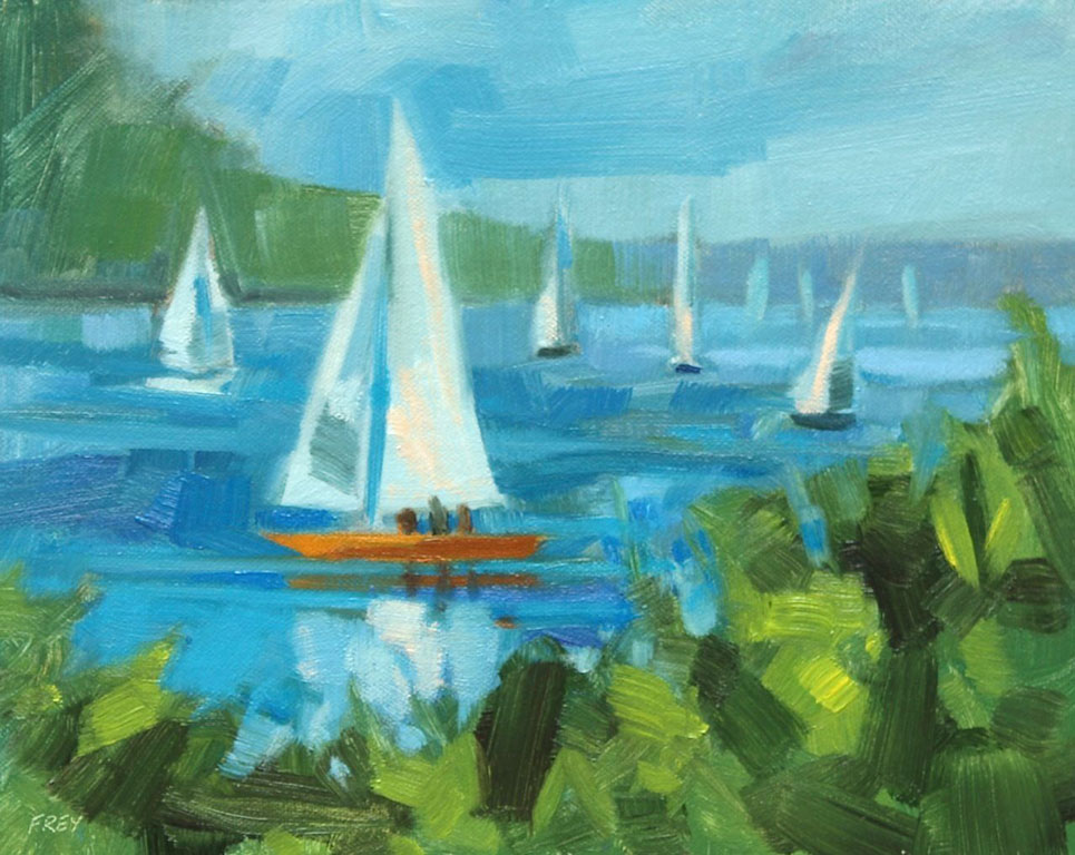 5. Philip Frey, Race on the Sound, oil on canvas 8" x 10"