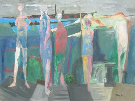 6. Florence Leif, Five Figures, 1957 oil on canvas 30" x 40"