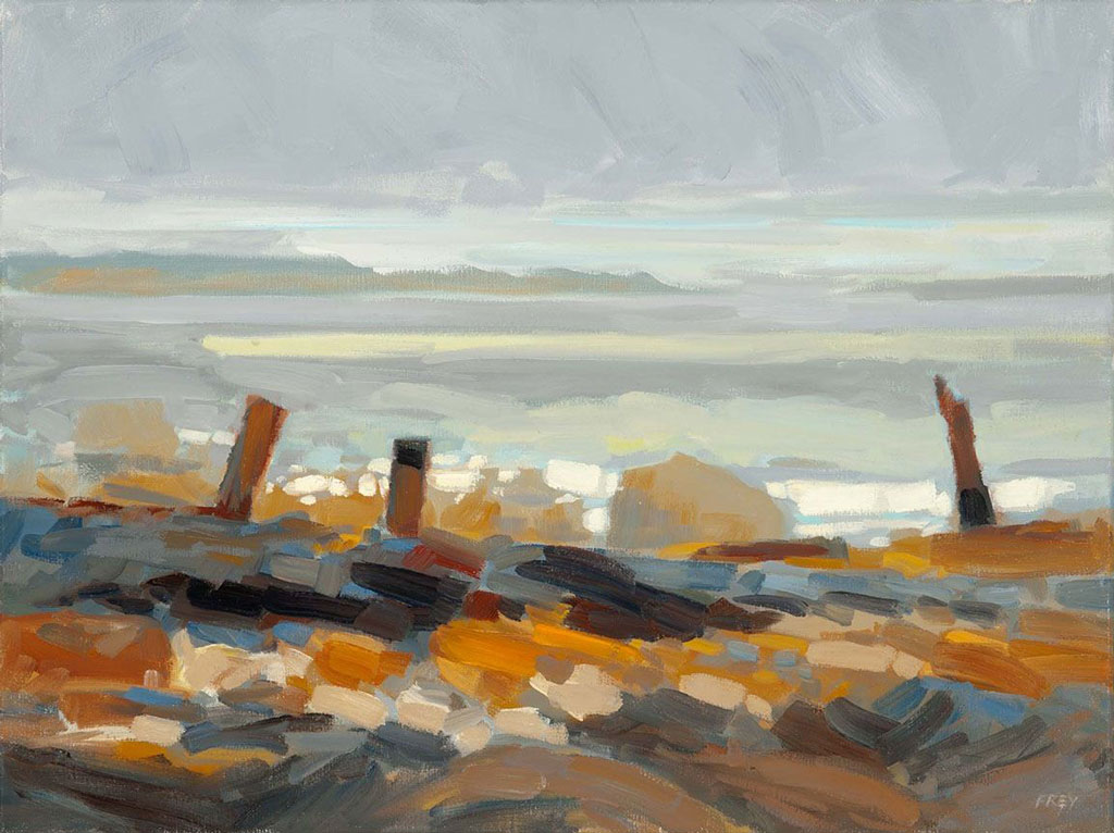 Frey is known for his vibrant paintings of the Maine landscape. His painterly approach and interpretation of color and light, give way to joyful paintings. Motifs include seascapes, and Maine’s working waterfront. Frey’s sense of color stems from an interest in Fauvism, a major avant-garde European art movement in the twentieth century.