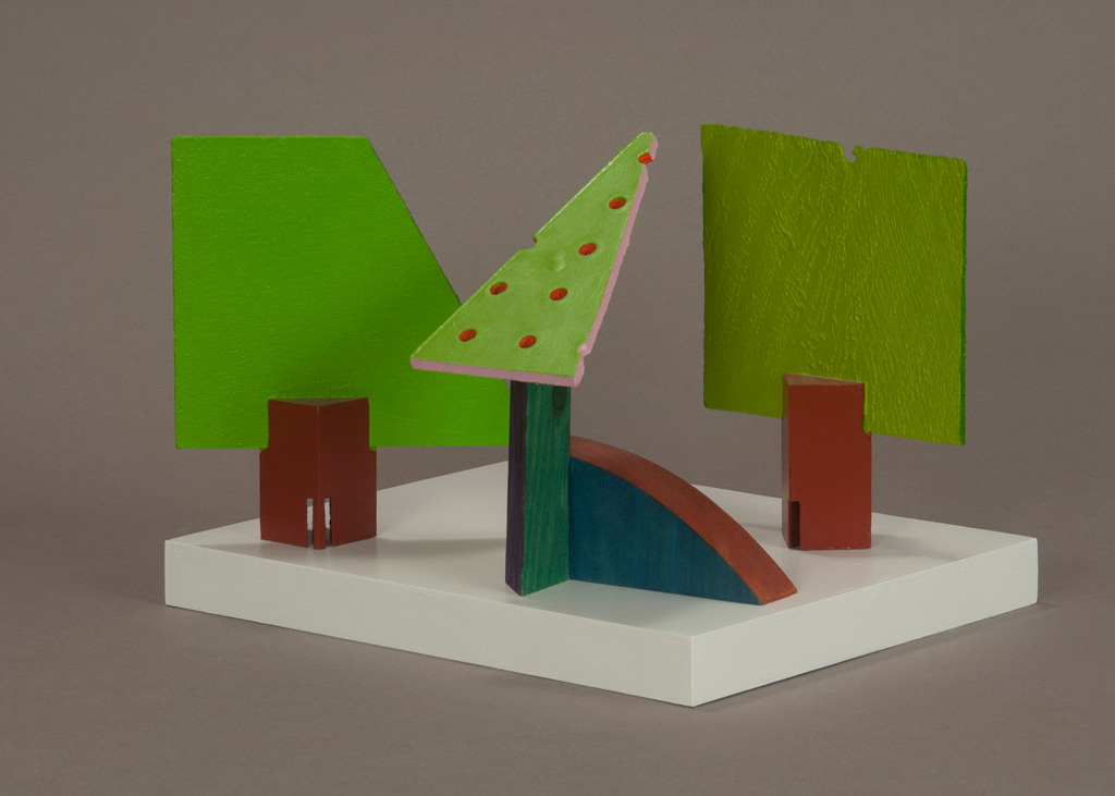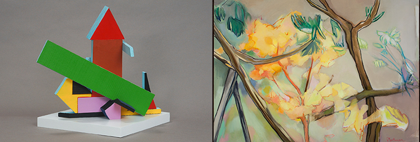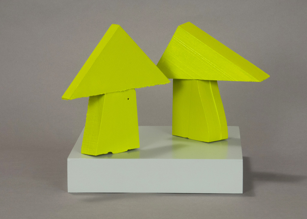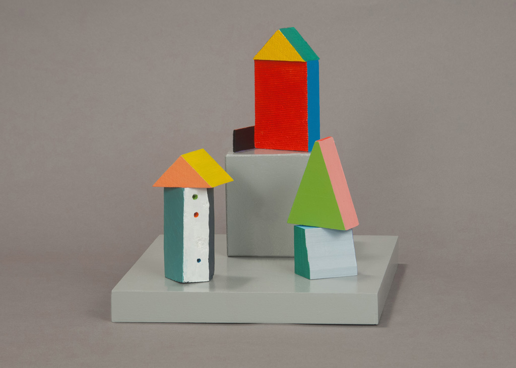 While Martiesian finds inspiration in the natural, Speiser is an urbanite. The sculptor introduces a new body of polychrome wood sculptures where he tames raw wood scraps with paint and color, then assembles them into quirky tableaus. Geometric shapes of squares, rectangles and triangles combine with cast off plywood from a carpenter’s floor to transmute into trees, creatures, ships, neighborhoods and forests.