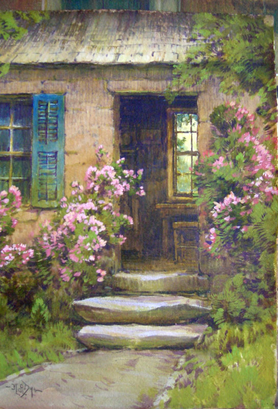 “My creed is still to bring into my work the charm of an old world town, the glory of dawn on a giant mountain, or the purple twilight that envelops the evening hour on a Como or Garda. If I can entrap a bit of the thrill that such places gives, if I can reproduce some of the lovely color nature reveals, if I can take some poor, tired shut-in nearer happiness...then I feel I have delivered my message.”
