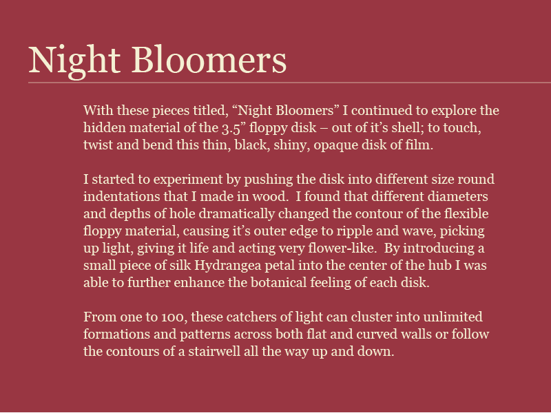 Kenn Speiser is a local Providence artist who has gained recognition for his meticulousness in the art making process as well as his sense of humor. He is known for his appropriation of traditionally non-art materials into thought-provoking works of art. Speiser has applied his imagination to materials ranging from garden hoses, to hacksaw blades, to sequins in ways that reveal their many possibilities beyond their intended function. He states, “most of my art starts with a specific material,” ... “I look for the material first then I try to think of a creative way to use it.” A graduate of Rhode Island School of Design, Speiser has also achieved regional and national attention for his public art sculptures.