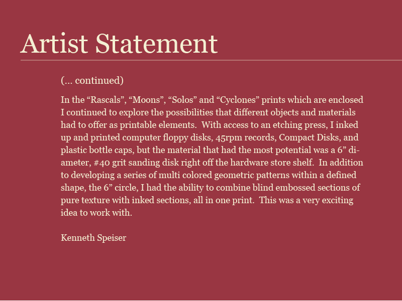 Ken Speiser was featured in a series of video portraits by NetWorks featuring twelve Rhode Island Artists.