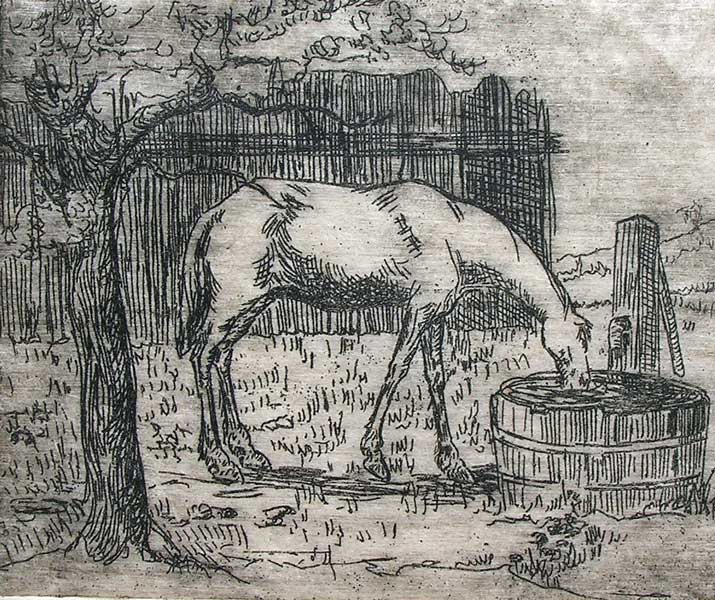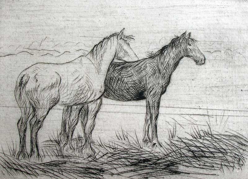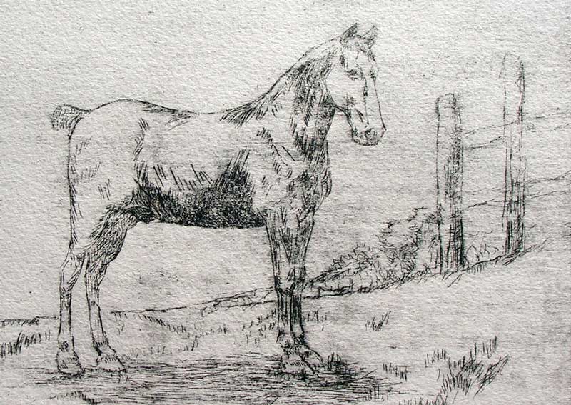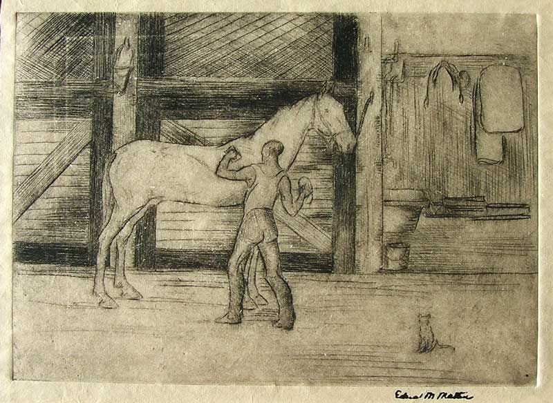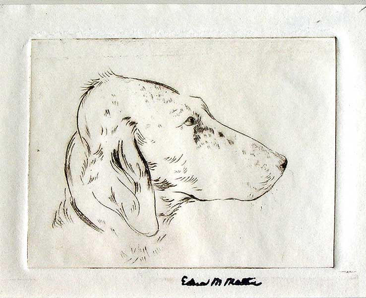 A member of the Providence Art Club and the Rhode Island Watercolor Society, Martin regularly submitted individual pieces and exhibited at both institutions. In a 1931 exhibition at the Providence Art Club with Eliza Gardiner, the Providence Journal noted that Martin showed “a number of delicate drypoints mostly of animals and western subjects. In these products of the copper plate and diamond needle, most of the characteristic burr has been carefully scraped down, and the result is a fineness and delicacy of line that even an etching cannot give.” Her prints were selected for exhibition in some prestigious venues such as the National Arts Club, the Art Institute of Chicago, Providence Art Club, and the Providence Watercolor Club.