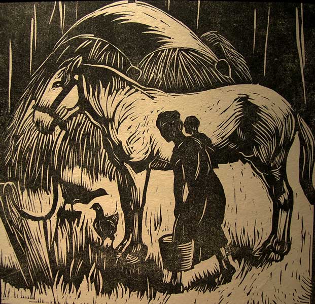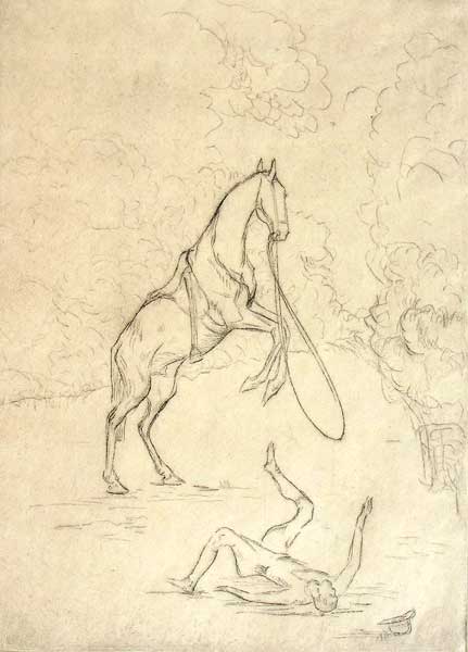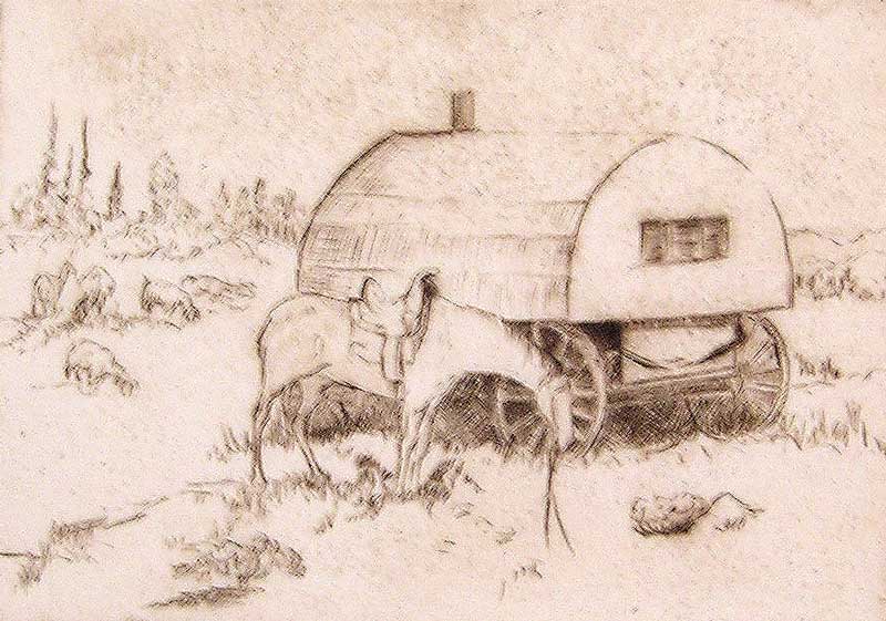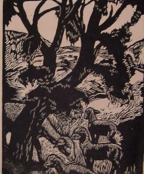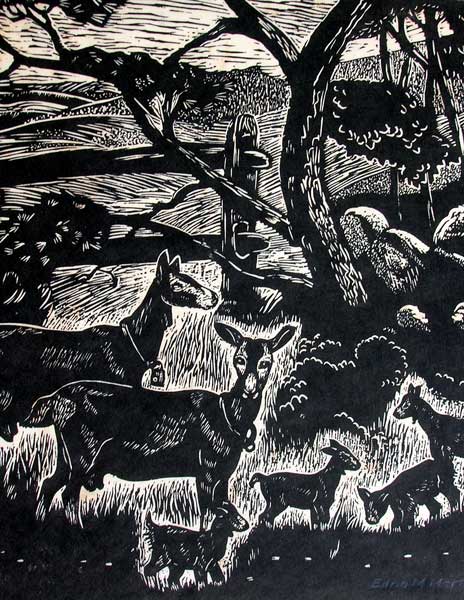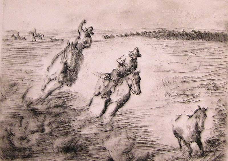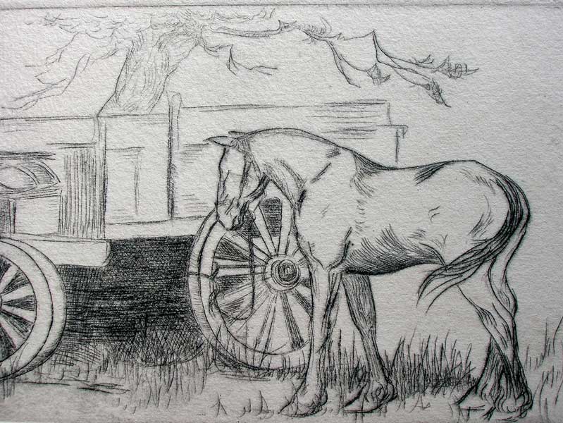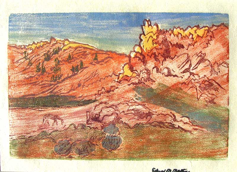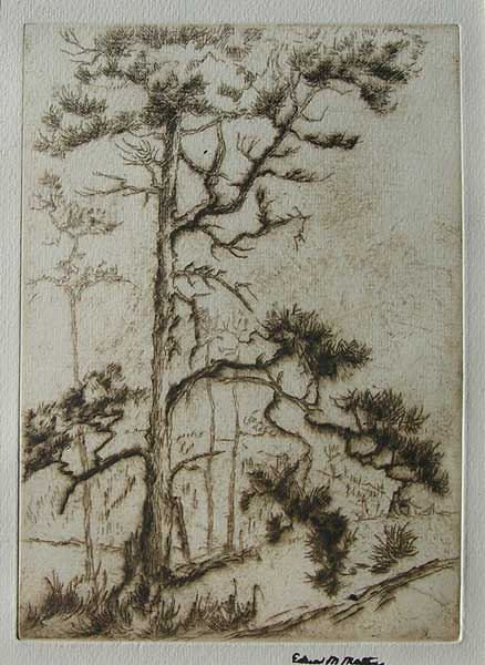 Martin’s love for the outdoors was evident throughout her life. In addition to teaching and making art, her daily life included horseback riding, hiking, and managing her family farm and all of its animals. During the summers of 1929 and 1931, Martin traveled to Wyoming and produced her most successful body of work. She returned with watercolors and etchings that highlighted the integration of her abilities in draftsmanship, printmaking and composition.