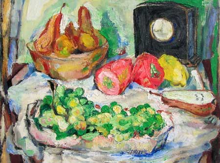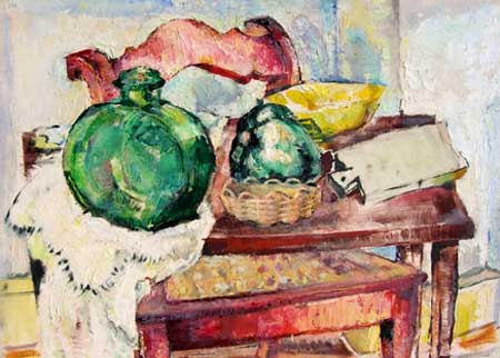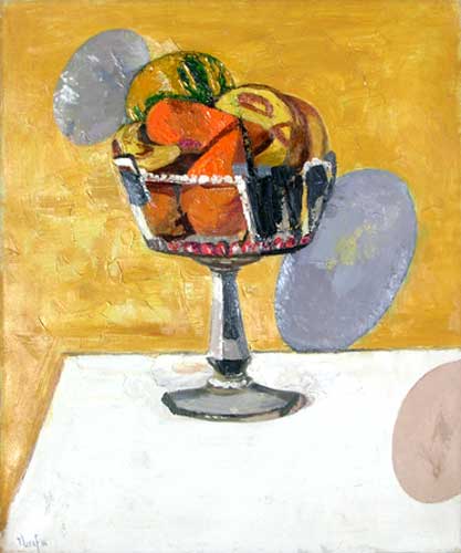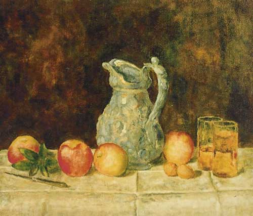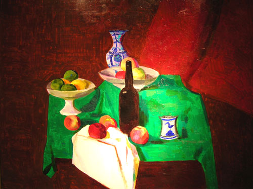 Still life became a favorite subject matter for 19th century American painters and continues to be popular today among contemporary artists. During the 19th century compositions of flowers and fruits were frequent entries in the local Providence Art Club exhibitions and overseas at the Paris Salon. While you will come across some fine early examples of still life in our gallery collection, the plethora of works in the 20th century indicate the far-reaching influence of such masters as Cezanne and later avant-garde artists on the American art scene.